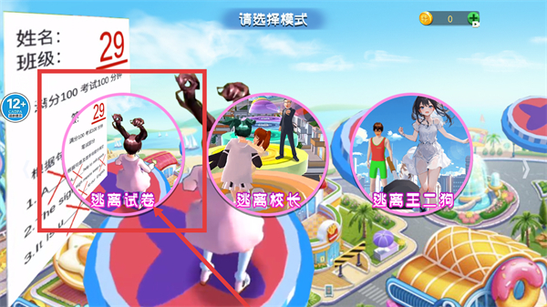 1、选择【逃离试卷】模式开启跑酷,专注操控角色躲避障碍,保持速度不被后方老妈追上。