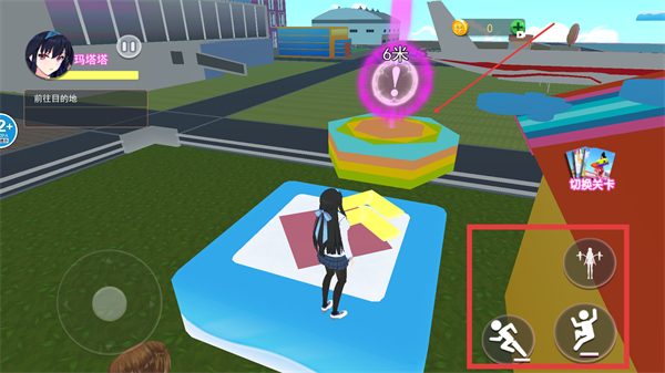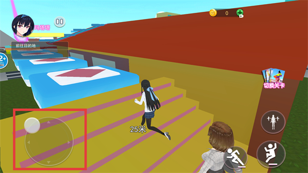 2、用【虚拟摇杆】控制角色左右移动,跨越校园场景中的障碍,朝着25米目标前进。