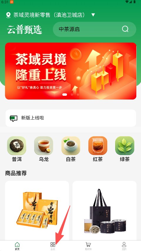 1、商品分类清晰直观,可按普洱茶、红茶、绿茶等茶类或中茶等具体品牌进行精准筛选。