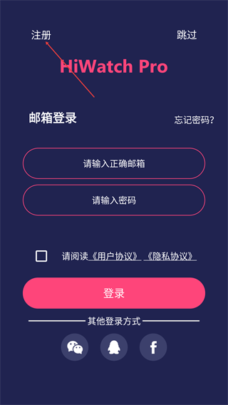 3、在登录页面,点击左上角【注册】,进入邮箱注册界面。