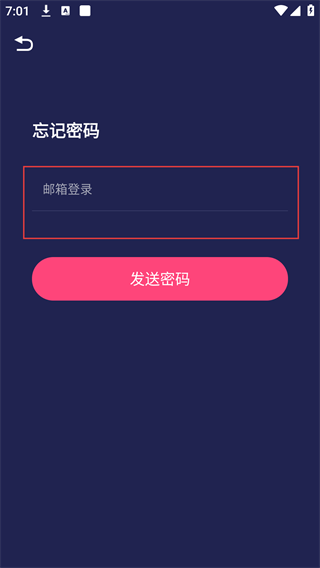 4、在忘记密码界面,输入注册时的邮箱,点击【发送密码】,通过邮箱接收重置密码的信息,完成密码找回。