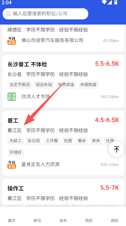 2、职位展示薪资、地点、经验要求,清晰呈现岗位基础条件,辅助求职过程的初步筛选决策。