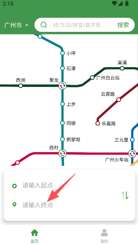 3、线路图结合起点终点输入,直观呈现路线,增强地铁出行路线规划的清晰性与实用性。