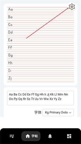 2、在字帖详情页点击设置图标,可进入设置相关的功能页面。