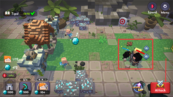 3、场景中出现带敌方单位,点击右侧【Attack】按钮发起攻击,击败敌方。