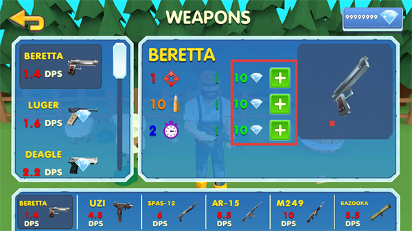 2、在界面,点击按钮,消耗钻石升级武器属性,增强战斗能力。