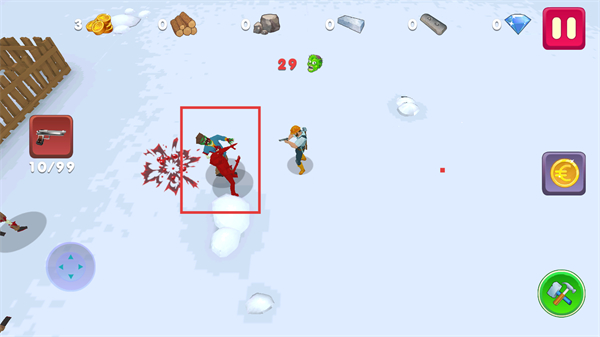 3、进入对战场景后,操控武器攻击僵尸敌方单位,击败它以获取资源并推进进度。