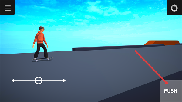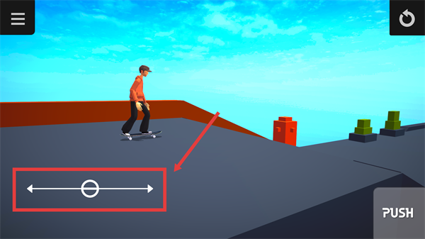 3、进入游戏后,点击界面右侧的【PUSH】按钮,可推动角色开始滑板移动。