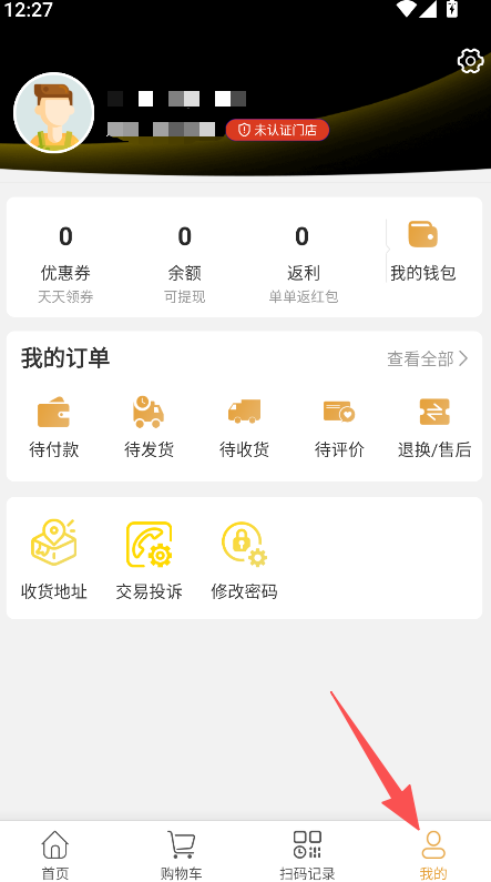 1、打开软件进入我的页面,查看订单及钱包等相关信息。