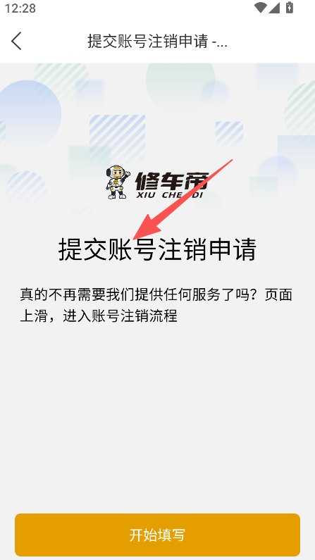 3、进入提交账号注销申请页面,点击开始填写启动注销流程。