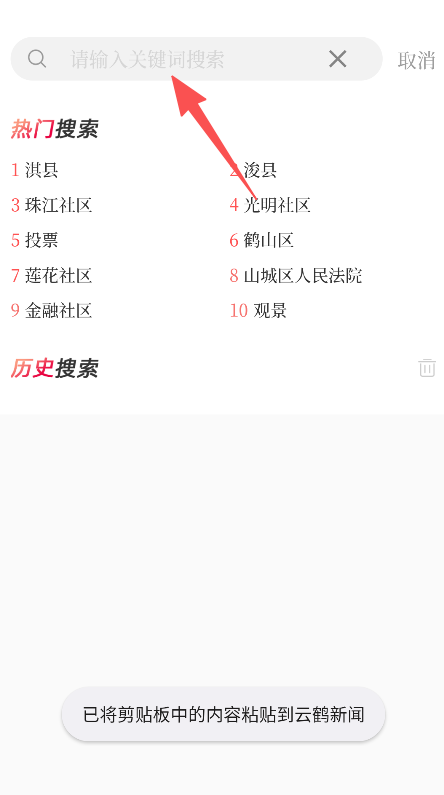 1、聚焦区域相关新闻资讯,设搜索功能含热门及历史搜索板块,可精准查找对应内容,适配本地新闻的获取需求。