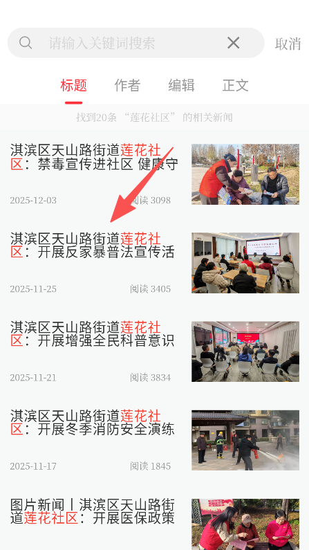 2、搜索结果按标题等维度分类,明确区分不同类别内容,便于快速定位目标新闻条目。