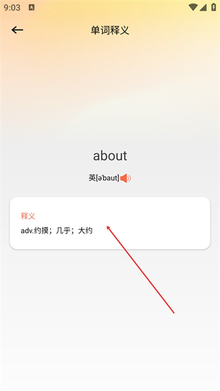 3、在词汇列表中,选择目标单词(如“about”),点击即可进入单词释义详情页。