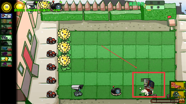 4、在僵尸路径布置【摄像头炮塔】,配合持续生产的【向日葵】,巩固防线抵御僵尸进攻。