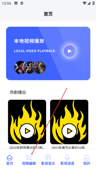 1、进入首页,点击底部【视频编辑】选项,进入视频编辑的功能选择页面。