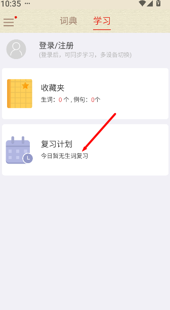 2、在学习页面中,打开复习计划功能选项。