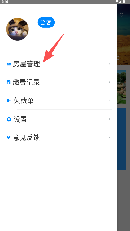 2、在侧边栏中选择并点击“房屋管理”选项。