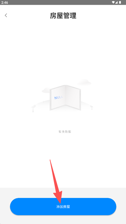 3、进入房屋管理页面后点击底部“添加房屋”蓝色按钮即可。