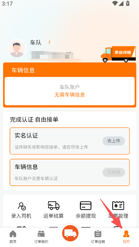 2、整合认证、接单、结算等功能入口,覆盖物流车队从认证到运营的基础流程环节。