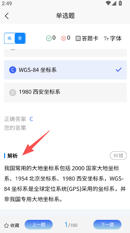 3、具备解析查看功能,完成题目作答后,查看题目对应的解析内容,了解知识点的详细信息。