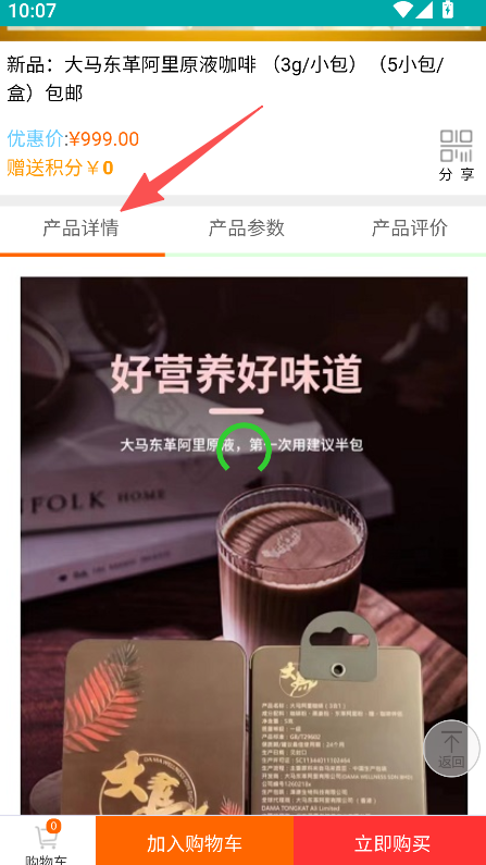 2、支持商品详情查看功能,点击目标商品进入详情页,浏览产品详情、产品参数等内容。