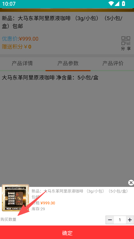 3、具备商品采购功能,调整购买数量点击确定后,选择加入购物车或立即购买完成操作。
