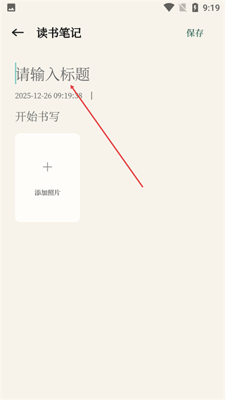 3、进入笔记编辑页,先在【请输入标题】栏填写内容,再补充正文并添加图片。