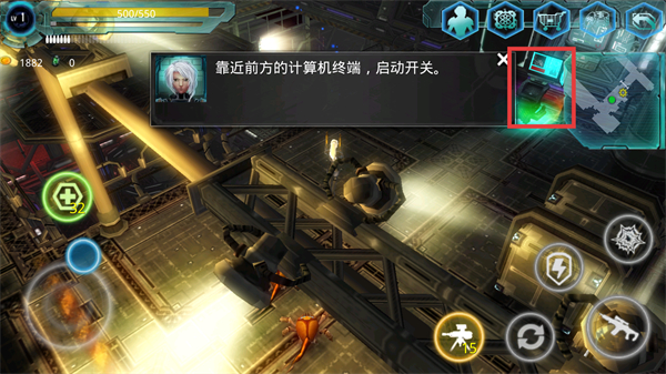 1、根据提示靠近【计算机终端】,启动开关推进关卡,可通过右上角地图查看终端位置。