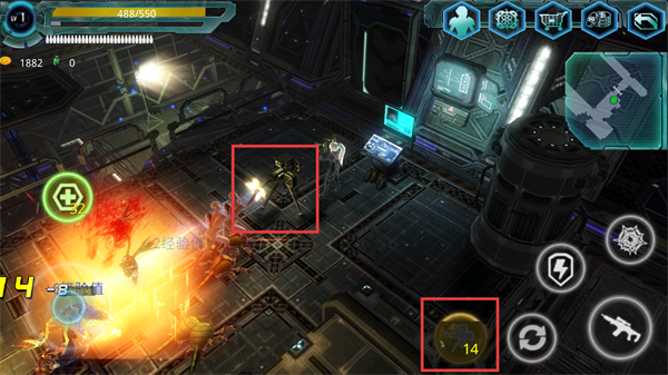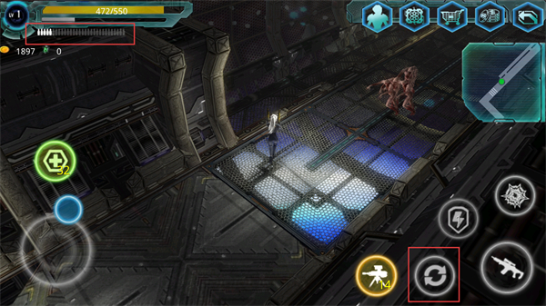 4、点击右侧标记处换弹,同时留意上方的子弹数量,及时换弹确保安全。