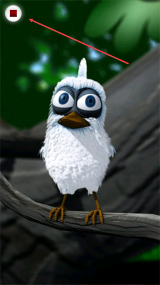 4、点击菜单中的对应选项完成操作后,界面会回到互动页面,左上角按钮变为【停止】标识,可继续与小鸟进行互动。