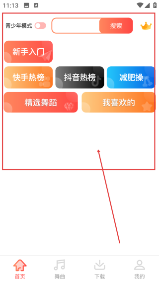 1、进入首页,可【切换青少年模式,通过搜索框查找内容】,选择新手入门等分类。