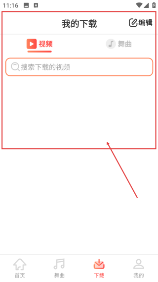 4、在我的下载页面,可【切换视频或舞曲分类】,用搜索框查找已下载的内容进行管理。