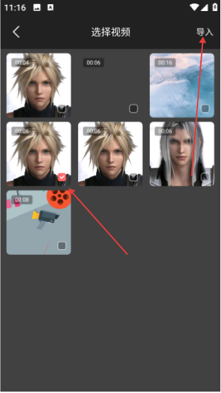 2、在选择页,选中【目标视频素材】后点击【导入】,进入视频倒放的编辑页。