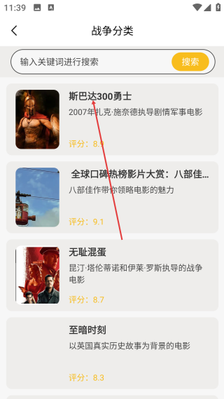 3、在列表页,点击【目标影片】,进入该影片的详情页。