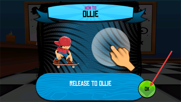 2、在【HOW-TO-OLLIE】教学界面,了解【RELEASE-TO-OLLIE】操作后,点击【OK】按钮确认并进入实操环节。