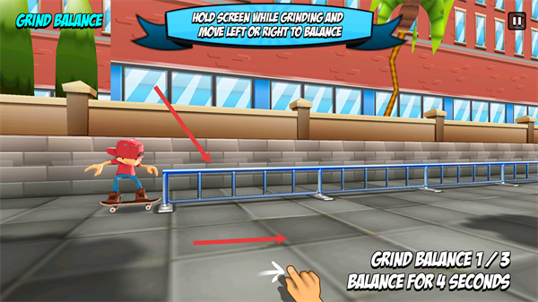 4、进入【GRIND-BALANCE】环节,按住屏幕并左右移动保持平衡,完成任务要求。