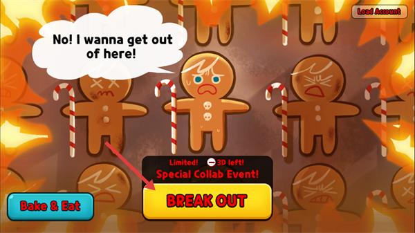 1、在主界面点击【BREAK-OUT】按钮,进入逃脱关卡,开启姜饼人的逃生挑战。