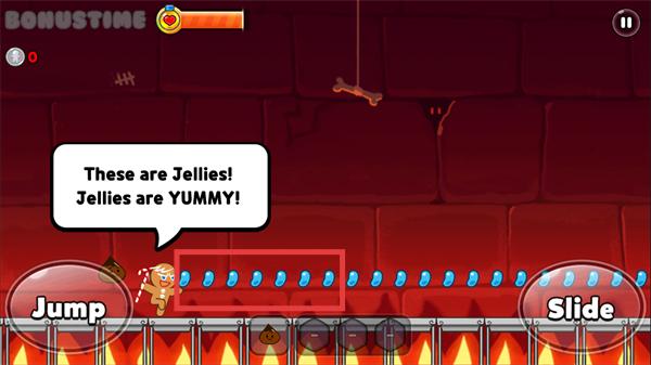 3、遇到【Jellies】道具时,控制姜饼人收集这些蓝色果冻,获取分数提升收益。