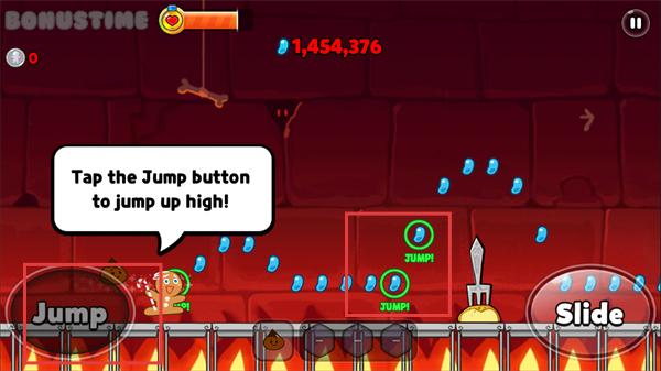 4、出现【JUMP!】提示时,点击【Jump】按钮让姜饼人跳高,收集高处的果冻道具。