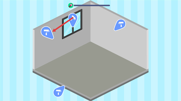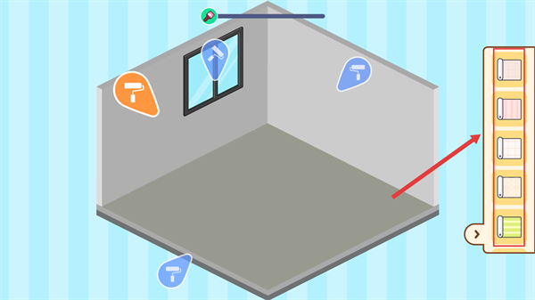 3、点击墙面区域对应的滚筒刷图标,触发墙面装修操作。