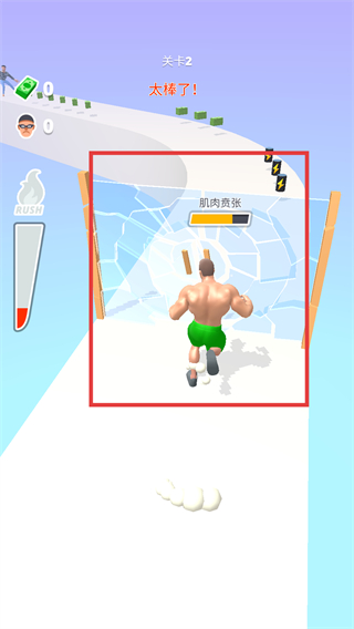 4、融入了轻度的收集与成长系统,沿途收集的能量用于即时增强肌肉,而收集的钞票则可用于解锁皮肤,增加可玩性。