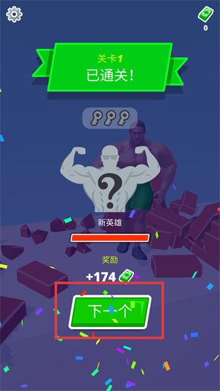 4、关卡通关后,获取奖励,点击【下一个】按钮,进入下一关继续冲刺挑战。