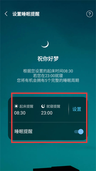 4、完成设置后,可查看起床、就寝提醒信息,同时开启睡眠提醒功能以保障作息。