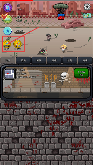 1、收集【10秒-×10】与【10秒-×100】类道具可获取资源,积累到【$1,000】后点击【Buy】按钮解锁新内容,推进游戏进度。