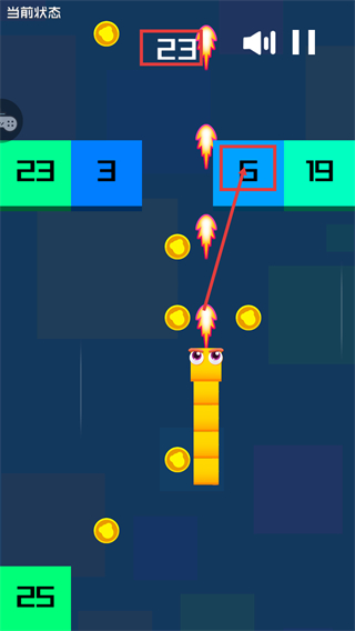 3、遇到带有火箭图标的增益道具时,操控角色触碰它,可获得火箭相关的增益效果,助力后续的数值累积与金币收集。