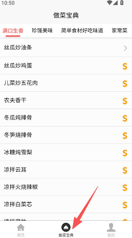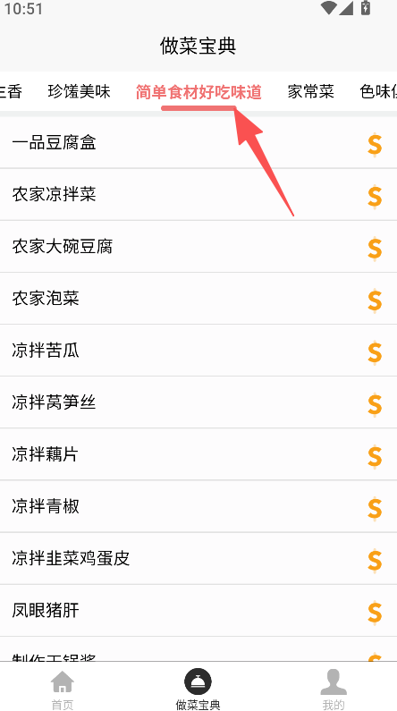 2、在做菜宝典页面,选择目标菜品分类。