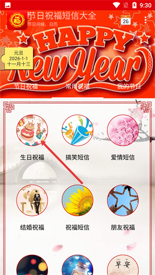 1、收录海量公历、农历节日祝福,覆盖日常生日、结婚、交友、表白等多元场景需求。
