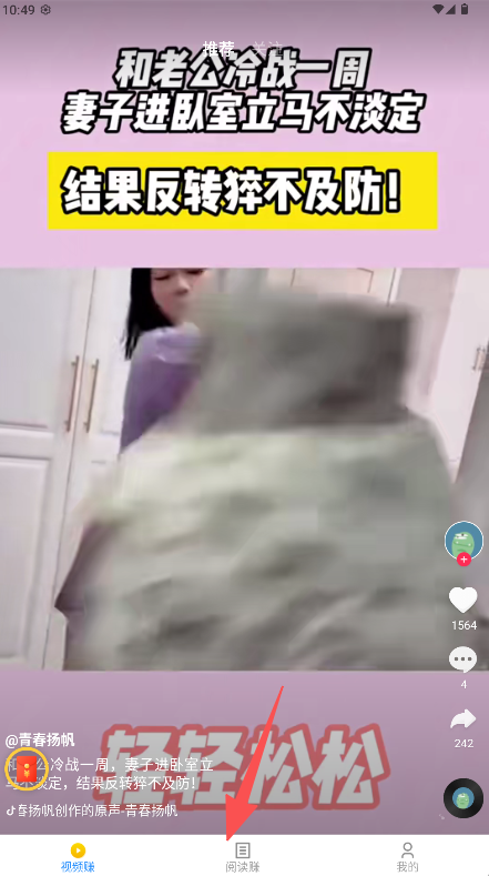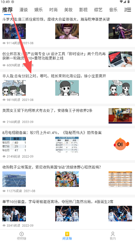 1、在底部导航栏点击进入“阅读赚”板块浏览并选择内容。