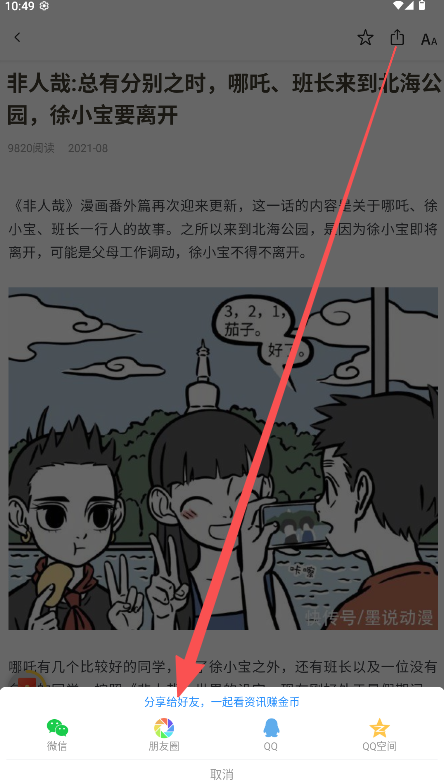 3、通过分享按钮将内容推荐给好友以获取额外奖励。