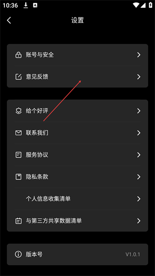 3、在“设置”界面中,选择“意见反馈”选项,跳转至意见反馈页面。